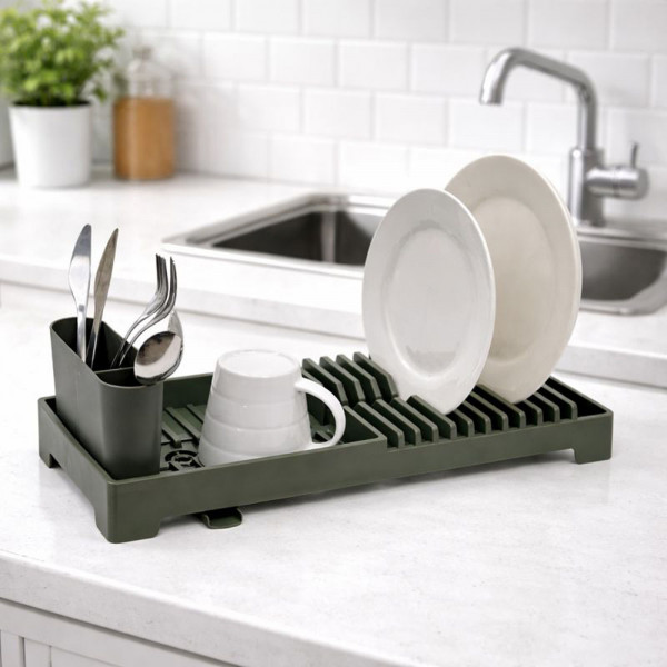 Πιατοθήκη Πλαστική Με Δίσκο Λαδί Ματ 19x46x13,5cm