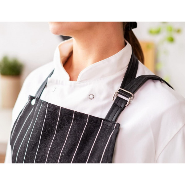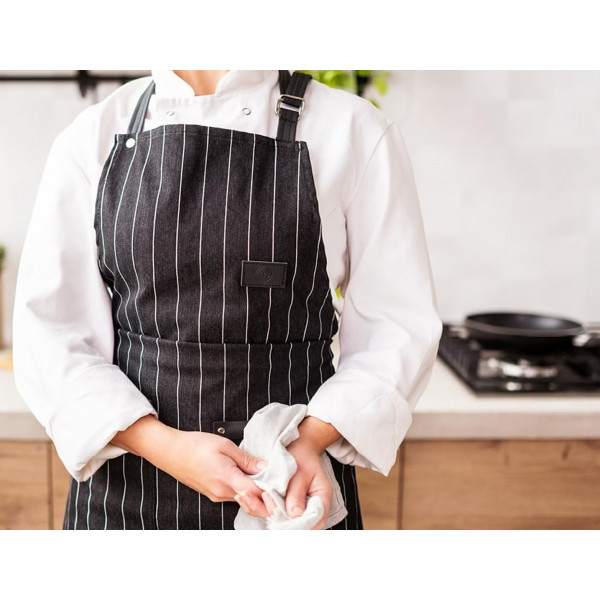 - Η ποδιά διαθέτει ρυθμιζόμενο λουράκι αυχένα, ώστε να μπορείτε να την προσαρμόσετε στην πιο άνετη εφαρμογή σας.