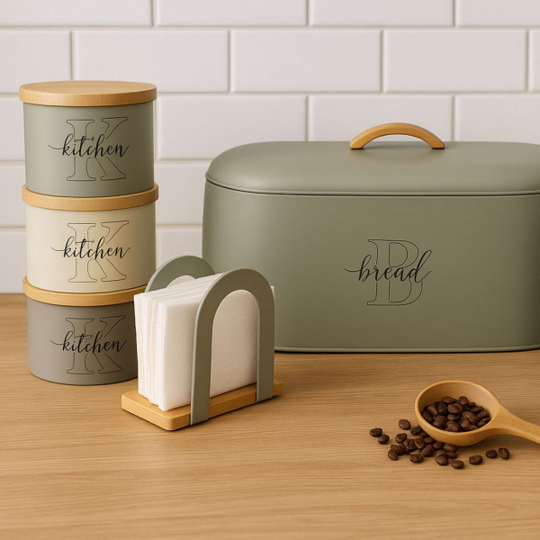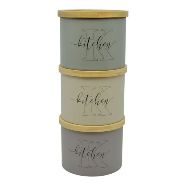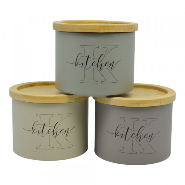 Βάζα Αποθήκευσης Μεταλλικά Σετ 3τμχ. Με Ξύλινο Καπάκι