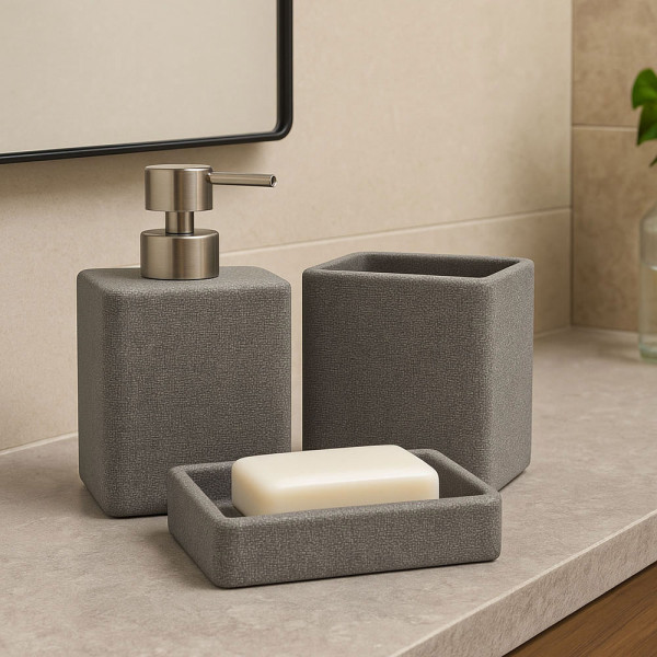 Dispenser Θήκη Για Κρεμοσάπουνο Πολυεστερική Σαγρέ Γκρι 8,5x5,7x16,2cm