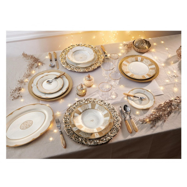 - Κατασκευασμένο από πορσελάνη υψηλής ποιότητας σε λευκό χρώμα με χρυσές λεπτομέρειες.