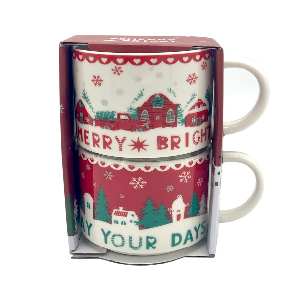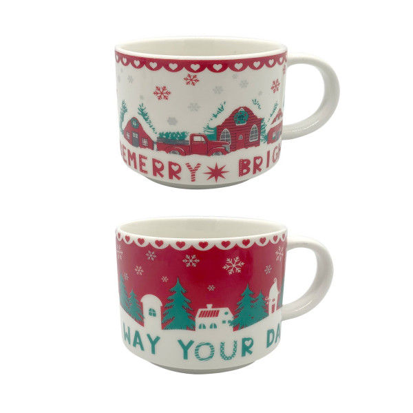 Χριστουγεννιάτικες Κούπες Πορσελάνης Σετ 2τμχ. Village 340ml Σε Κουτί Δώρου