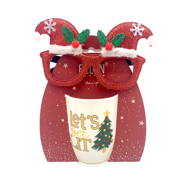 Χριστουγεννιάτικη Κούπα Πορσελάνης Notes Με Γυαλιά 350ml