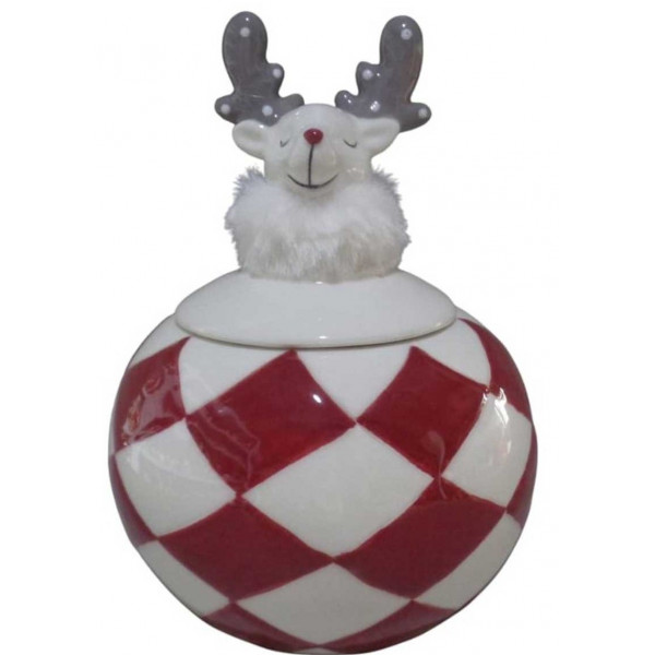 Χριστουγεννιάτικη Κεραμική Μπισκοτιέρα Τάρανδος 14cm