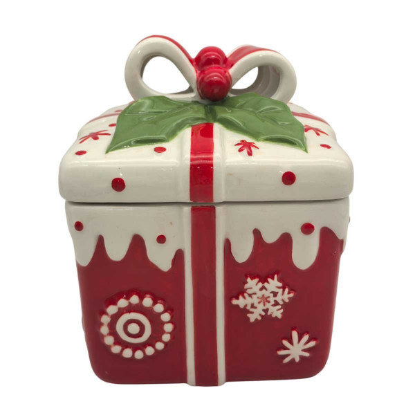 Χριστουγεννιάτικη Κεραμική Μπισκοτιέρα κουτί Δώρου Φιόγκος
