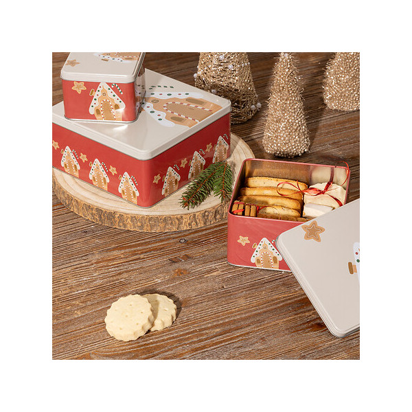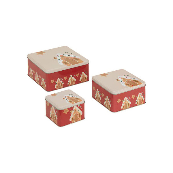 Atmosphera Χριστουγεννιάτικα Μεταλλικά Κουτιά Σετ 3τμχ. Τετράγωνα Red
