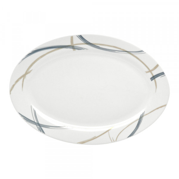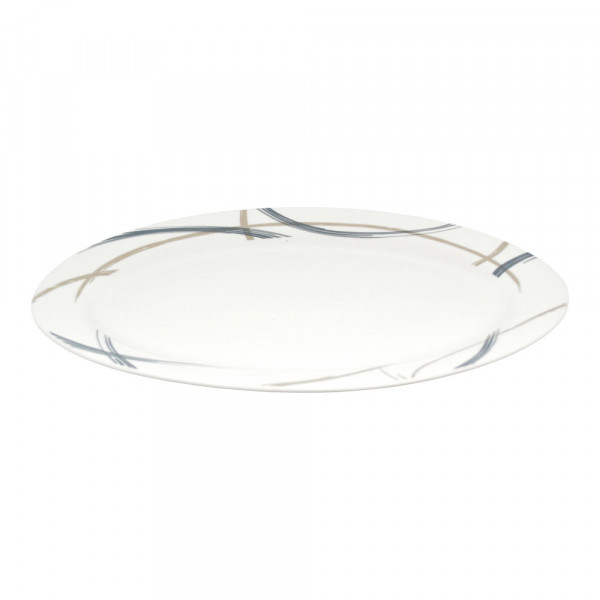 Πιατέλα πορσελάνης διαμέτρου 35,5cm, με ανθεκτική κατασκευή, ιδανική για καθημερινό σερβίρισμα. Διαθέτει μοντέρνο σχέδιο με καμπύλες γραμμές σε μπλε και μπεζ αποχρώσεις, εύκολη στο καθάρισμα, κατάλληλη για πλυντήριο πιάτων και φούρνο μικροκυμάτων.