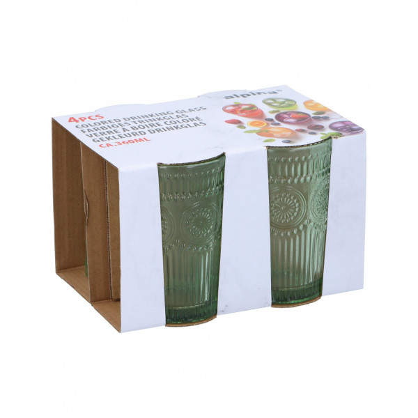 Arte Regal Ποτήρια Νερού - Αναψυκτικού Σετ 4τμχ Ανάγλυφα Green 360ml